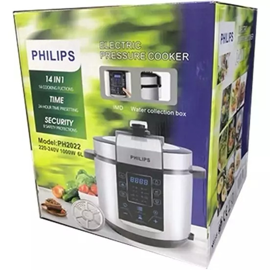 6 لیتر توان مصرفی 1000 وات جنس بدنه استیل ضد زنگ تایمر دارد صفحه نمایشگر دیجیتالی قابلیت گرم نگه داشتن دارد سایر مشخصات بخارپز, پلوپز, زودپز - امکان تنظیم زمان مرحله فشار از 0 تا 59 دقیقه, دمای گرم نگهداشتن بین 60 تا 80 درجه سانتیگراد, قابلیت گرم نگهداشتن تا 12 ساعت