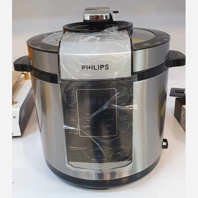 مشخصات رنگ: استیل وزن: 6.8KG توان: 1000W ظرفیت: 6 لیتر برنامه پخت: 14 عدد صحفه نمایشگر: LED پنل: لمسی ظرف داخلی: با پوشش آلومینیوم درب کلیپسی: کاملا ایمن جنس بدنه: استیل ضد زنگ قابلیت: سیستم قطع خودکار هنگام اتمام پخت سازنده: PRC ابعاد: 30 × 36 × 36 سانتیمتر برنامه های پختسرخ کردن FRY – کیک CAKE – سوپ Soup – تاس کباب Stew – شیر و فرنی Milk Porridge بخار پز کردن Steam پلو Pilaw گوشت خالص Galantine حبوبات Cereals Express آبگوشت Broth مربا Jam خمیر ماست Yoghurt Dough سر آشپز CHEF قابلیت گرم نگهدارند Keep Warm
