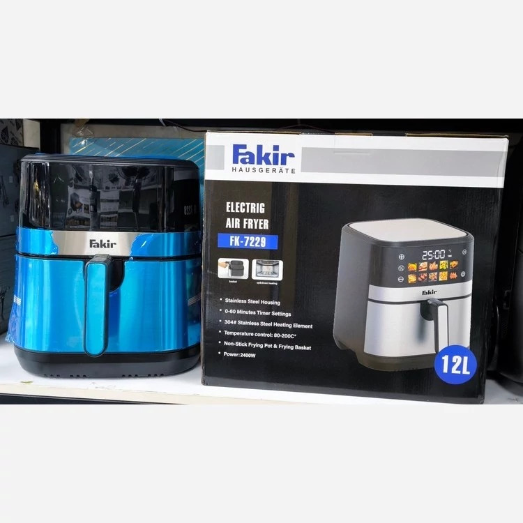 سرخکن بدون روغن 12 لیتری فکر مدل FK-7229 آشپزی سالم، سریع و بدون دردسر؛ انتخابی بزرگ برای خانوادههای شلوغ سرخکن بدون روغن Fakir FK-7229 یک ایرفرایر حرفهای، قدرتمند و چندمنظوره است که با طراحی مدرن، ظرفیت بسیار بزرگ و امکانات متنوع، به شما امکان میدهد غذاهای خوشمزه را بدون حتی یک قطره روغن آماده کنید. این مدل علاوه بر ظاهر چشمنواز، کیفیت ساخت بالا و فناوریهای کاربردی، یک مجموعه کامل از قابلیتهای پخت را در خود جای داده و عملاً یک آشپزخانه کامل در یک دستگاه است. 🍗 ظرفیت عظیم 12 لیتری؛ مناسب خانواده بزرگ و مهمانی با مخزن 12 لیتری واقعی، میتوانید انواع غذاهای حجیم را تنها در یک مرحله بپزید: مرغ کامل پیتزای خانواده حجم زیاد سیبزمینی میگو، ماهی و استیک سبزیجات گریل کیک و دسر