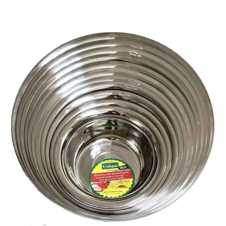 سرویس لگن استیل 11 پارچه یونیک پلاس حک شده برند یونیک کشور سازنده جنس استیل ضد زنگ تعداد 11 عدد قابلیت شستشو دستی ,ماشین ظرفشویی رنگ استیل سایر ویژگی ها کاملا ضد زنگ بدون پایه و دسته حک شدهUnique plus سایز 11 پارچه :20-22-24-26-28-30-32-34-36-40 يکي از وسايل کاربردی و ضروري آشپزخانه است که براي شستشو و آبکش کردن انواع سبزيجات، ميوه، برنج و ماکارانی مورد استفاده قرار می گیرد. لگن و آبکش یونیک از استیل بسیار باکیفیت و مقاومی ساخته شده است سرویس لگن استیل یونیک اصل یکی از برندهای معتبر و معروف در زمینه لوازم آشپزخانه است ، محصولات این برند تحت لیسانس آلمان در چین ساخته میشود ، محصولات این برند در درجه کیفی A است و در چند دهه گذشته از خود نام و رسم خوبی برجای گذاشته است ، لبه های ضخیم این محصول این اطمینان را میدهد که به هیچ عنوان کج و تغییر فرم نخواهد داد ، بدنه ضخیم و جنس استیل 304 این محصول که از بهترین نوع این فلز است ،میتواند سالها در کنار شما و در آشپزخانه ها مشغول به کار باشد ، سایزهای بسیار مفید و کاربردی آن برای هرگونه شستشوی سبزیجات ، مرغ و گوشت ، میوه و…. مناسب است.