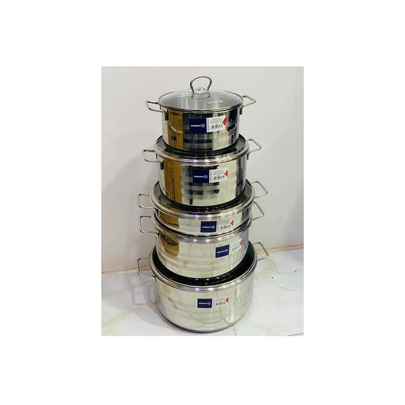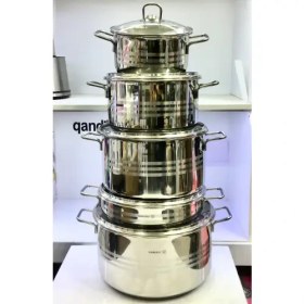 سرویس 10 پارچه شامل: قابلمه سایز 20 با ارتفاع 12.5 سانتیمتر و حجم 3.9 لیتر قابلمه سایز 24 با ارتفاع 14.5 سانتیمتر و حجم 6.5 لیتر قابلمه سایز 28 با ارتفاع 16 سانتیمتر و حجم 9.8 لیتر قابلمه سایز 32 با ارتفاع 17 سانتیمتر و حجم 13.6 لیتر تابه سایز 28 با ارتفاع 7 سانتیمتر و حجم 4.3 لیتر جنس قابلمه و تابه: استیل ضد زنگ جنس درب ها: استیل ضد زنگ قابلیت شستشو در ماشین ظرفشویی