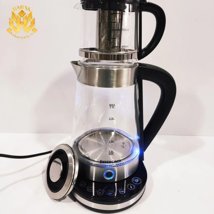 دارای سر اضافی برای کتری. کتری این چای ساز ترکیبی از استیل و شیشه پیرکس است و دارای نشانگر سطح آب است. ظرفیت قوری این دستگاه 1.1 لیتر و ظرفیت کتری آن 2.5 لیتر است. همچنین چای ساز بوش قابلیت چرخش 360 درجه کتری روی پایه را دارد و در هر جهتی که می خواهید می توانید آن را بچرخانید و روی پایه قرار دهید. پس از اتمام استفاده از چای ساز، فیلتر قوری را از آن خارج کرده و به سادگی بشویید.