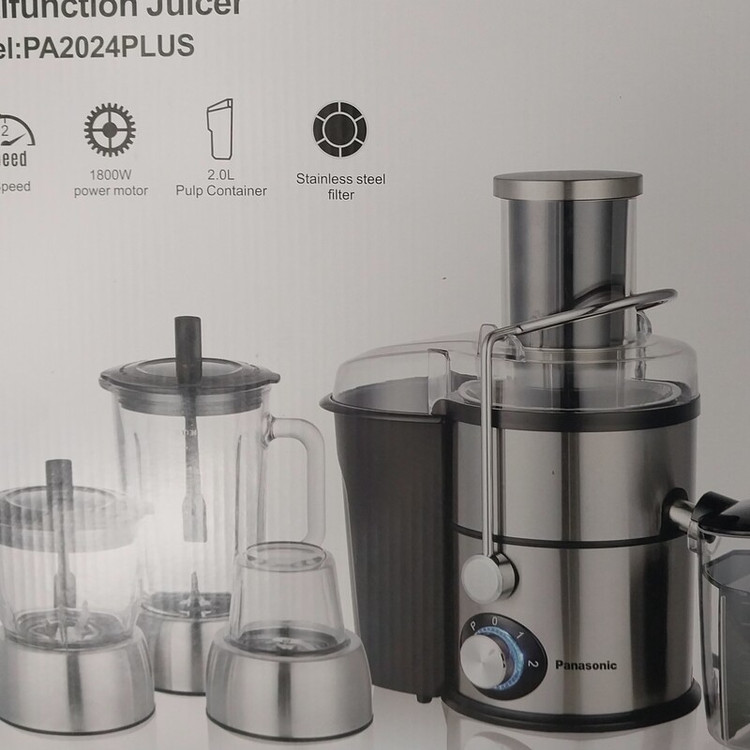 آبمیوه گیری 4 کاره پاناسونیک مدل A-M0396با توان 1800 وات محصولی با طراحی زیبا است که دارای دو مخزن آبمیوه و تفاله است که هر کدام به گونهای مجزا از دستگاه در کنار آن قرار گرفتهاند. قابلیت جدا شدن مخزنها علاوهبر نظافت آسانتر، ظرفیت بیشتری را نیز در اختیار مصرفکننده قرار داده است. تیغه اصلی از جنس استیل ضدزنگ است و دهانه دستگاه نیز از قطر مناسب برخوردار است. علاوهبر فیلتر دستگاه که بهراحتی قابل شستوشو بوده، لوازم جانبی نیز قابلیت شستوشو در ماشین ظرفشویی را دارند. از جمله لوازم جانبی میتوان به مخزن پلاستیکی آبمیوه که دارای درجه بندی است، و همچنین مخزن تفاله آبمیوه گیری، آسیاب،مخلوط کن و پارچ اشاره نمود که بهراحتی میتوان آنها را پس از پرشدن از دستگاه جدا نموده و با توقفی کوتاه در عملکرد دستگاه، آنها را خالی و برای ادامه آبگیری روی دستگاه نصب کرد. آبمیوه گیری 4 کاره پاناسونیک مدل A-M0396دستگاهی چهار کاره محسوب میشود و در 2 سرعت کار میکند. پایههای ضد لغزش زیر دستگاه مانع از لرزش و جابجایی حین فعالیت میشود. لوله خروجی دستگاه و پارچ آبمیوه طوری طراحی شدهاند تا آبمیوه مستقیم وارد پارچ شده و چکهای ایجاد نشود. ظرفیت پارچ در حدی است که 3 تا 4 لیوان کوچک یا متوسط آبمیوه را در خود جای میدهد