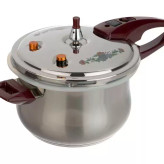 کشور مبداء برند آلمان گنجایش 9 لیتر با قطر 26 52*26*34 سانتیمتر وزن 5.800 کیلوگرم میزان فشار 1680T بدنه از استیل نوع 18.8 جنس دسته باکلیت نسوز درب پیرکس توری بخار پز استیل ضد زنگ دارای سوپاپ اطمینان واشر سیلیکونی مخصوص کفی سه لایه برای انتقال بهتر حرارت دارای یک سبد برای بخارپز دارای سیستم تخلیه فشار جهت تامین حداکثر انرژی